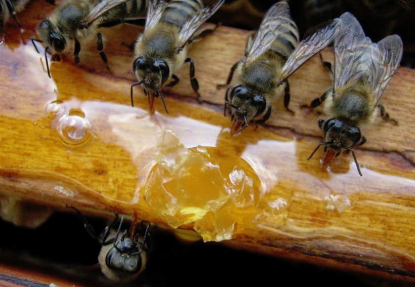 Пчеловоды забирают часть мёда, и во время зимовки необходимо подкармливать пчёл сахарным сиропом — он помогает насекомым не потерять силы и не даёт пчелиной семье погибнуть от голода.